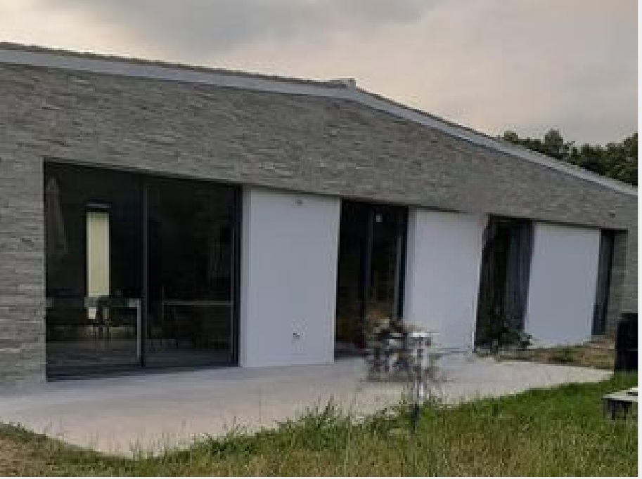 Construite en béton armé, ses 4 façades sont recouvertes de barrettes de pierres multiformat, posées à la main, une par une.